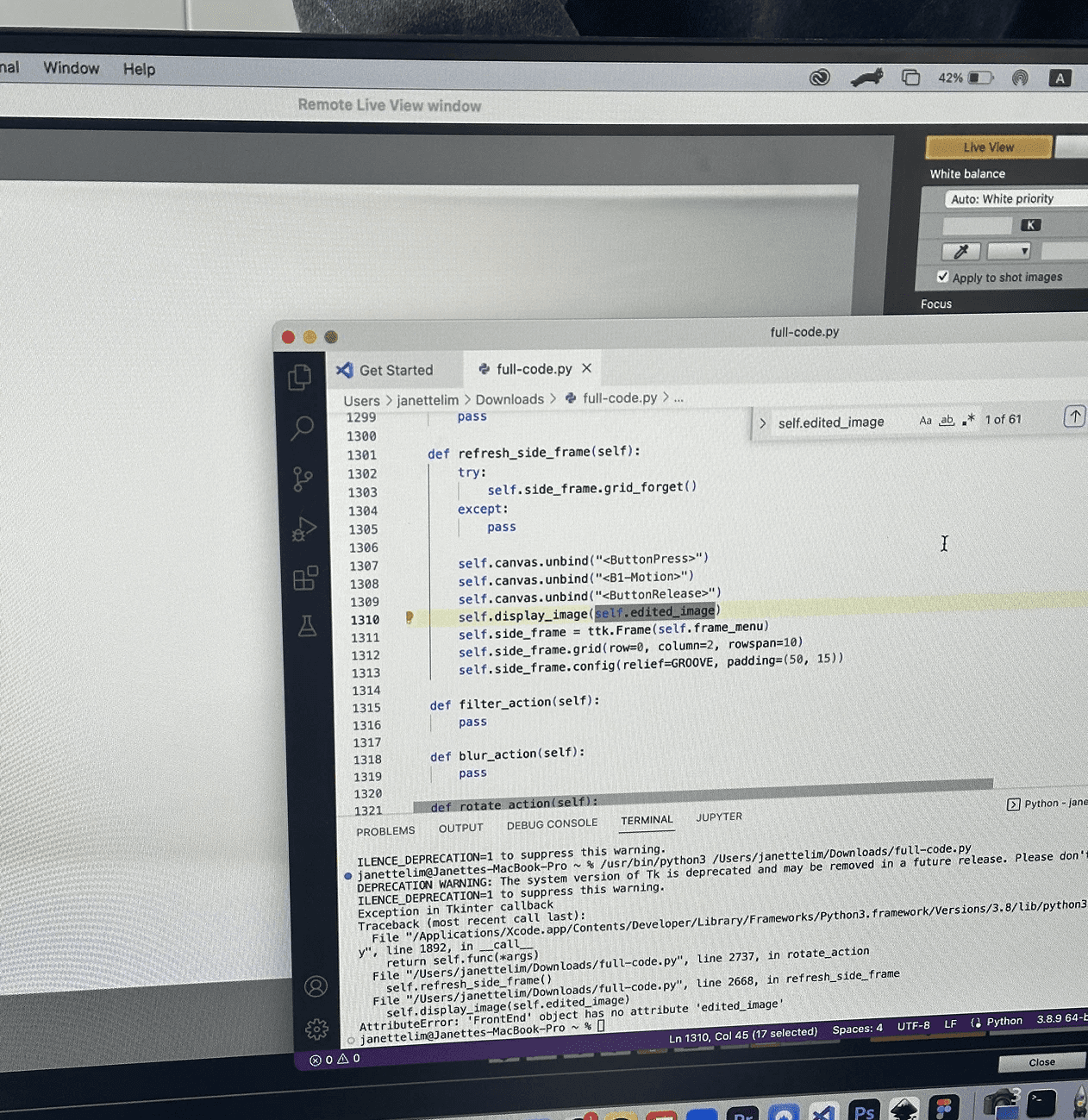To bring the photobooth experience to life, I built the entire interface using Python (Tkinter) and JavaScript/Canvas-based overlays. The goal was to build system that embeds the image into the frame instantly after they select the image.